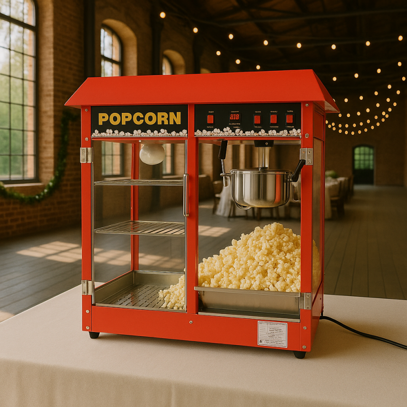 Diese hochwertige Popcornmaschine im auffälligen Retro-Design ist ein echter Blickfang auf jeder Veranstaltung. Mit ihrem leistungsstarken Heizsystem sorgt sie für eine schnelle Zubereitung und garantiert frisches, duftendes Popcorn in wenigen Minuten.