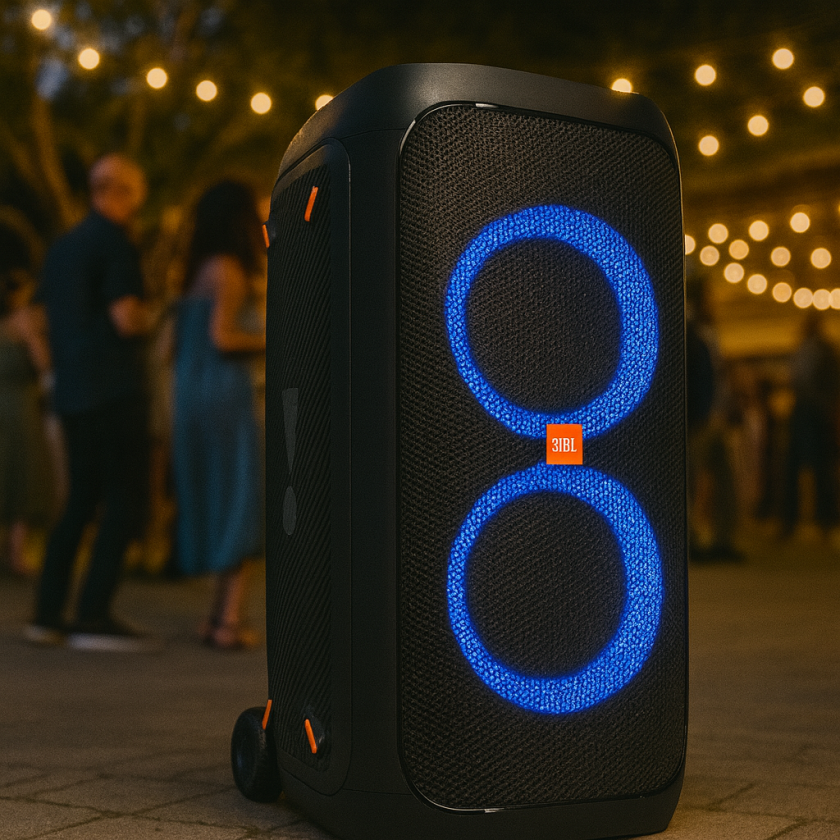 Die JBL PartyBox 310 bringt Festival-Feeling auf jedes Event. Mit sattem JBL Pro Sound, tiefen Bässen und eindrucksvollen Lichteffekten sorgt sie für echte Partystimmung – egal ob drinnen oder draußen.