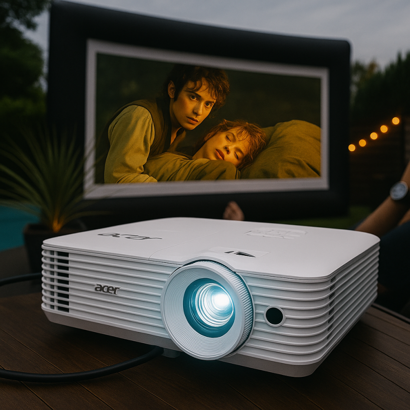 Der Acer Beamer liefert gestochen scharfe Bilder, satte Farben und beeindruckende Helligkeit – ideal für Filmabende unter freiem Himmel, Präsentationen oder Eventshows.